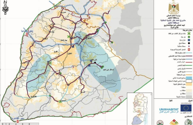 تضم محافظة الخليل عددًا من الموارد المائية التي يعتمد عليها السكان في حياتهم اليومية والزراعة، حيث يوجد في المحافظة 37 ينبوعًا طبيعيًا تستخدم كمصدر رئيسي للمياه، بالإضافة إلى 68 موقعًا لتجميع مياه الأمطار في برك أو خزانات، والتي تُستخدم لتخزين المياه في فترات الجفاف. أما الآبار الارتوازية، فتبلغ في المحافظة حوالي 3 آبار تُستخدم كمصدر للمياه الجوفية.
